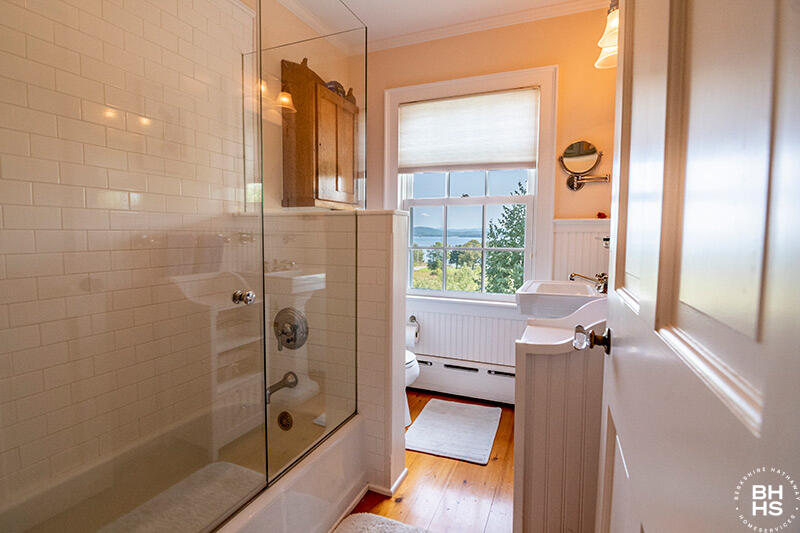 Originally granted to Colonel Willett after the revolutionary war, the Willett Farm property was first built on in 1812. This completely renovated home on over 47 stunning acres offers Lake Champlain waterfront views as well as pasture and mountain views in all directions. Graced with four fireplaces (3 indoors and 1 outside), 4 bedrooms, 4 bathrooms (3 en-suite), mud room, covered porch on 3 sides with dining and sitting areas, detailed molding, built-ins, central air conditioning and radiant in floor heat. A separate large year round custom barn across the driveway is comprised of sleeping areas, a workshop, 2 parking areas, finished first floor with radiant heat, sauna, gym, media space and a full bathroom. The second floor of the barn has a reading room, substantial storage and so much potential. Over one mile of walking trails through wooded paths, a log lean-to, zip line, flower gardens, bee hives, meandering streams with a spawning brook trout, apple orchard, and specimen tree plantings. There is an additional Lake Champlain waterfront property with 75 ft on the lake, and a boathouse just steps away.